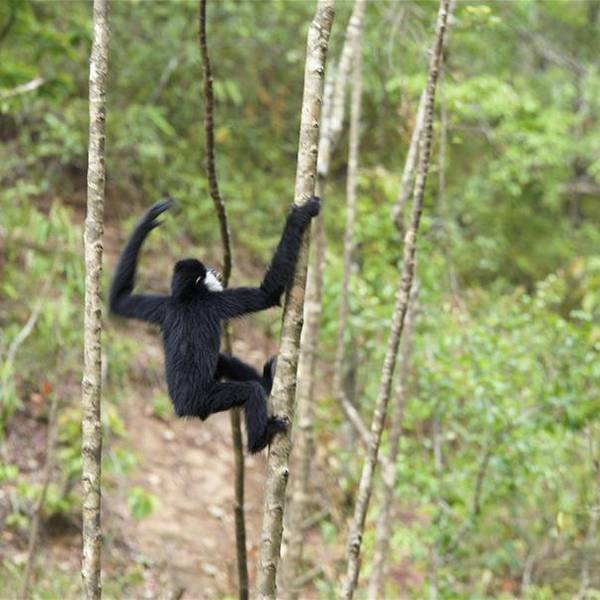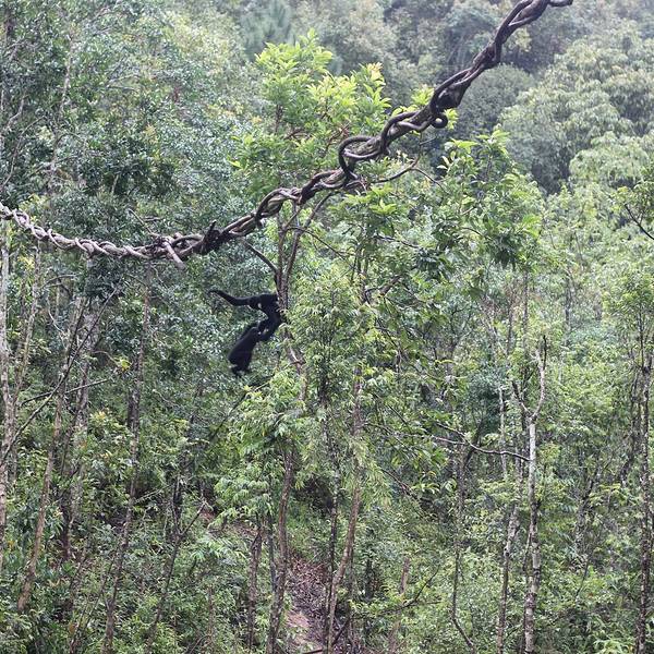 这种灵长类动物的聪明才智可是不容小觑,晚上睡觉的时候可以不拉窗帘,但洗澡的时候一定要拉好帘子,就怕深邃的森林里的某一只枝叶繁茂的树上,一只长臂猿躲在那里正瞅着你在浴霸下洗刷刷洗刷刷。当然这种与大自然合二为一的境界还是很令人期待的。如果你特别期待不一样的感受,我建议你一大清晨敞开帘子,面向大自然的洗一次毫无遮拦的森林沐浴。因为往往在这个时候,会能听到一种特别夸张而且特别复杂的歌声,这是在陆生哺乳动物中并不常见的,甚至是独一无二。这种歌声特别嘹亮而且动听,方圆1-2公里。