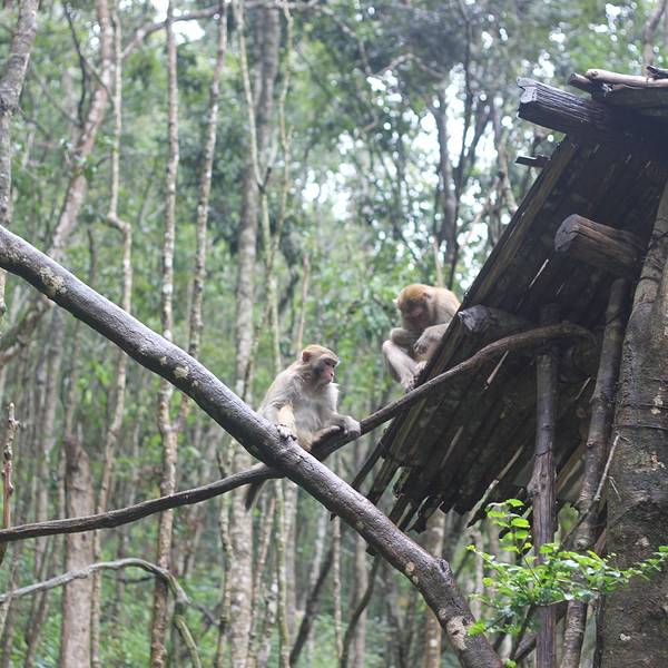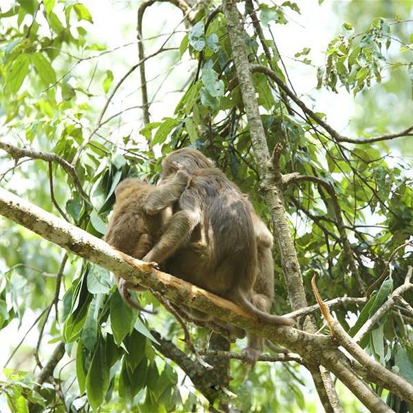 猕猴是亚洲地区最常见的一种猴,适应性强,生理上与人类较为接近。虽说猕猴易驯养繁殖,可它还是有自己的脾气的。攀枝爬藤,看似活泼,实际上就是一群专门爱搞破坏的小坏蛋。采食野果时贪婪嗜争,边采边丢,还挑食,只吃甜果子,没熟的就给丢了,故群猴过往处处遍地断枝弃果。当我们将目光转移到树上的时候,几只小猕猴正闹腾的攀爬着树枝,随手抓一把叶子就往嘴里塞,可这些家伙却不是吃素的,别瞧个子小,动作快得就跟武侠小说的快如闪电般的轻功似的。它们会吃小鸟,鸟蛋,各种昆虫,甚至是蚯蚓和蚂蚁。这简直就是动物界的顶级蛋白质吃货呀。好在这森林里为这些小家伙提供了丰富的食物来源和良好的生活环境,使得这块土地成为它们此生的乐土。