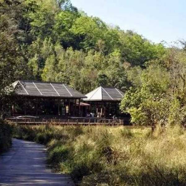 该吃就吃,该睡就睡,该玩就玩,该闹就闹,这样真性情的生活氛围当真是人类极为羡慕的。林中小屋,位于普洱太阳河国家公园小熊猫庄园内,因此这里处处都生活着小熊猫,它们像旅行者一样,每天在不同的地方出没。倘若你一不小心在灌木树丛里发现了一只猫脸熊身,似猫非猫,似熊非熊,还拖着一条粗大带彩色环纹的尾巴,那么这一定就是小熊猫了。如果还不敢确定它到底啥,那么就看它会不会卖萌?要知道小熊猫可是这片森林里最会卖萌的动物呢。我始终觉得这些旅行中的小熊猫简直就是人类背包客的鼻祖。为何这样说?小熊猫平日栖居于大的树洞或石洞和岩石峰中,早晚出来活动觅食,这样的性质就跟背包旅行客往往不讲究住宿条件一样,有时候遇到恶劣环境,也能安然自得的睡上一觉。