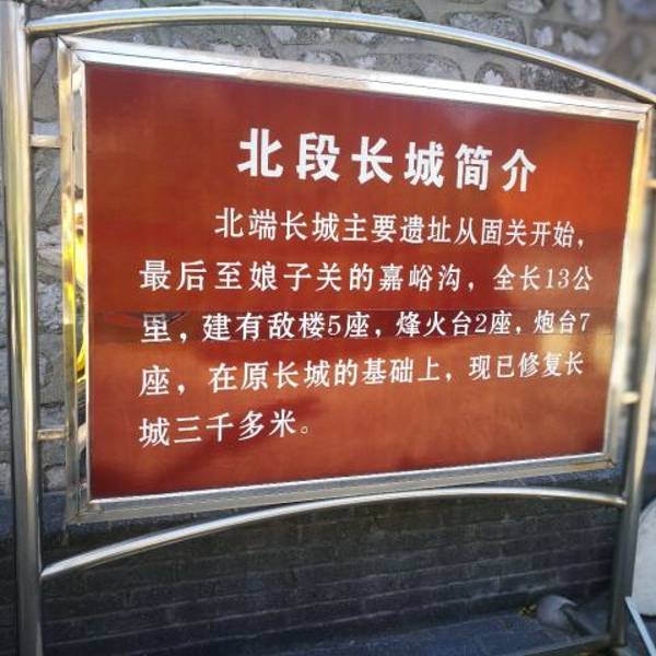 ...路况不是很好,据说要整修了,不知何时,行進山间看著变紅的山葉,景色幽美,可惜來早了,晚几週更佳娘子关和固关比差一大節,雖然娘子关有瀑布,溪流,玻璃棧道,但要看長城,应该來固关,可惜名氣不夠响亮,遊客稀少。從娘子关搭出租过來的,路况不是很好,据说要整修了,不知何时,行進山间看著变紅的山葉,景...娘子关和固关比差一大節,雖然娘子关有瀑布,溪流,玻璃棧道,但要看長城,应该來固关,可惜名氣不夠响亮,遊客稀少。從娘子关搭出租过來的,路况不是很好,据说要整修了,不知何时,行進山间看著变紅的山葉,景色幽美,可惜來早了,晚几週更佳。一路上大貨車衆多不太好走,到了固关,据说当年秦始皇走的驛道就是出此地進入河北,好像石家庄的秦皇古道就連接到此处。高速公路过此将关分成兩半,現有桥相通,兩边各整修一段,南边只是長城,北边有药楼及寺庙,值得一遊。门票50解说30 展开