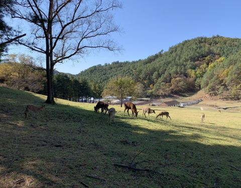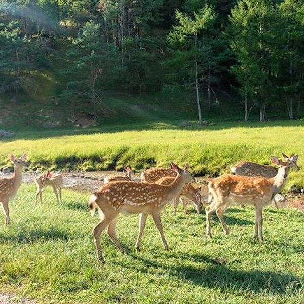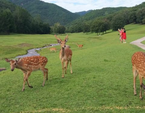 门票 30元/人、开放时间 早7点30分~晚5点堪比奈良的天然鹿场群鹿追逐、人间自然景象清澈小溪潺潺流淌宛如天然的高尔夫球场刚吃过早饭的群鹿和小鹿零距离互动拍照群山环抱中的金山鹿苑小鹿在林间纳凉 展开