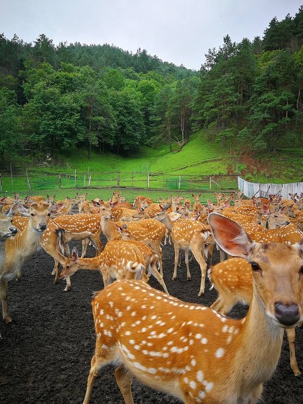 一大群的半散养梅花鹿,可以喂,可以摸 (很多人看不到鹿可能是因为来的时间不对,下午4点左右,饲...一大群的半散养梅花鹿,可以喂,可以摸 (很多人看不到鹿可能是因为来的时间不对,下午4点左右,饲养员会在前面平原地区给鹿撒玉米粒喂,那时候放眼望去,全是鹿。)