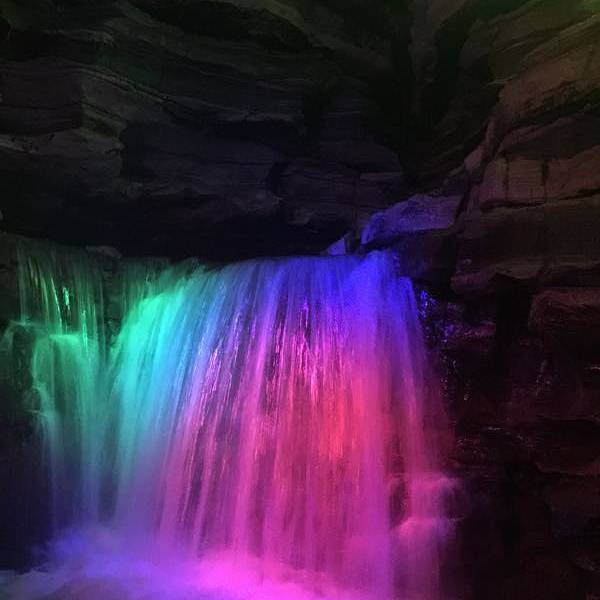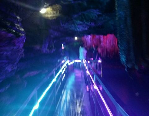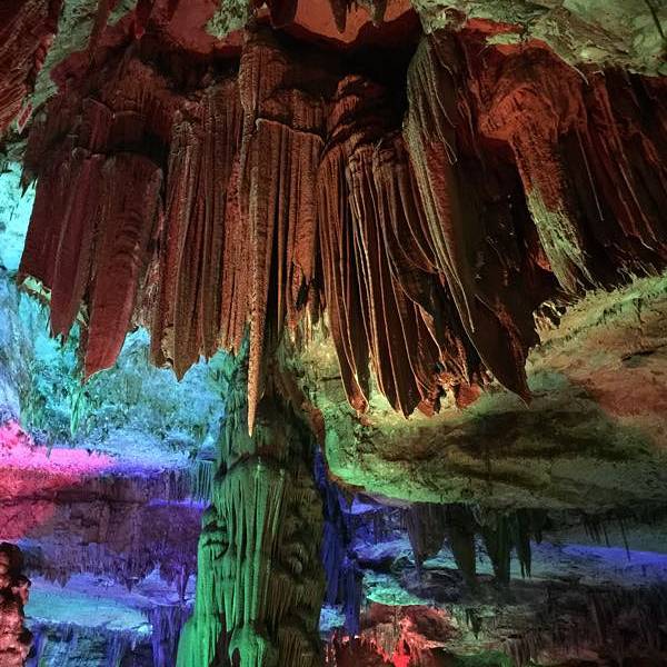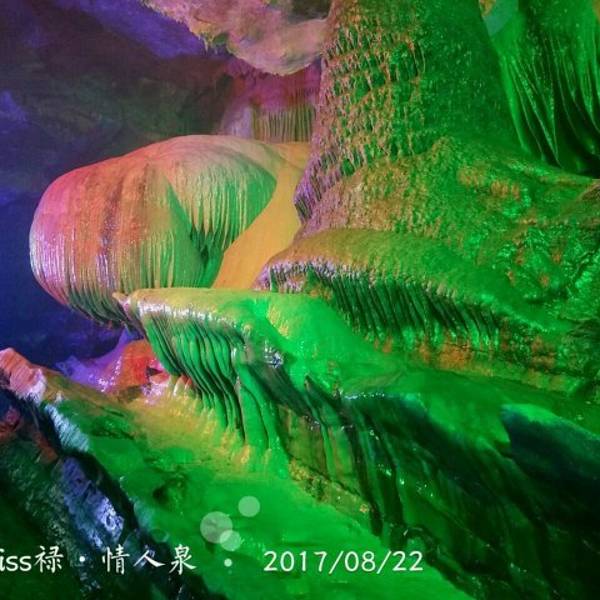 景区不是很大,洞里面很凉爽,有地下飞瀑,听说进去的情侣最好手牵手一起走,挺浪漫的,洞里五颜六色很漂亮景区不是很大,洞里面很凉爽,有地下飞瀑,听说进去的情侣最好手牵手一起走,挺浪漫的,洞里五颜六色很漂亮。建议情侣可以去看看,像我这种单身狗逛一圈就没什么意思了。