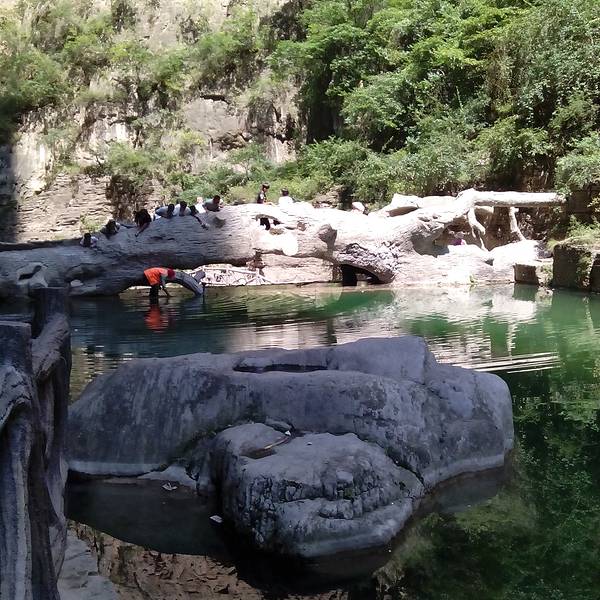 昨天下了一天的雨,今天去河水较大,清澈,也很凉爽。虽然有一些人工修葺的痕迹,但不伤整体的自然秀美。没有坐缆车到峰顶。 展开