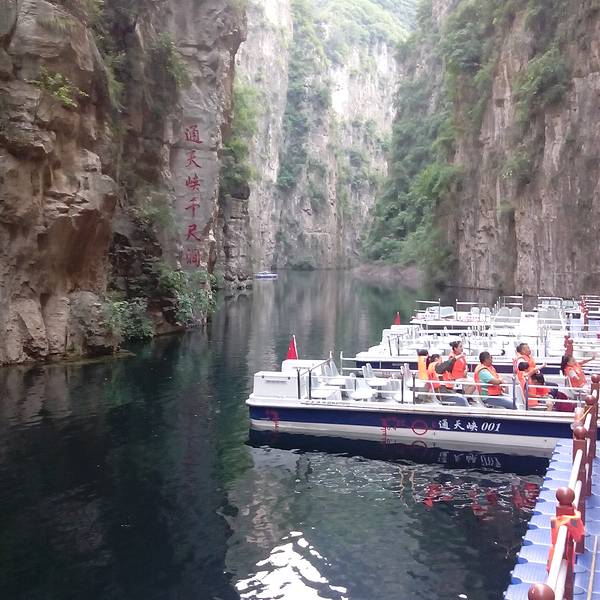 通天峡里面主要景点有:通天湖,石屏山,猕猴寨,戏水广场,嬉水潭,天河壶口,神龟湖。这里属暖温带半湿润大陆性气候,冬无严寒,夏无酷暑,雨热同季,全年平均气温9.5℃,与河北承德皇家避暑山庄属于同一类气候。