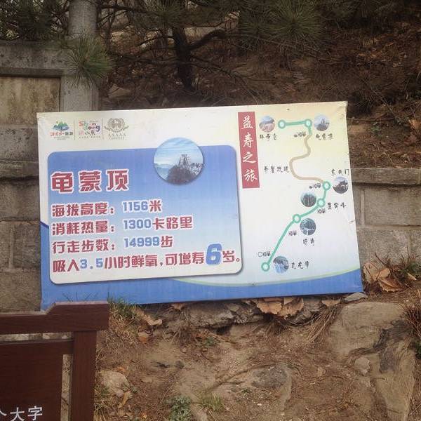 沂蒙山旅游区龟蒙景区位于平邑县东部、临沂市的西北部,是沂蒙山旅游区蒙山的主峰所在景区,同时也是沂蒙山国家地质公园的主碑所在地。景区内植被茂密、空气清新,在这里你可以登临山东第二高峰“龟蒙顶”,远眺群山秀色;或是行走于江北第一栈道“蒙山悬崖栈道”,体验在悬崖上行走的刺激;在景区内还可欣赏大型山体雕刻——蒙山寿星。 景区山脚下的“蒙山胜境”牌坊处是上龟蒙顶的三条游览路线的交汇点。其中西路的登山古道现还未开发完全,暂不能走。从牌坊处向东是车行公路,可乘坐景区小交通上山,比较省力,沿途有不少景观。从牌坊处直走便是中路的徒步登山道,以石阶为主,途中景点多、景色好,如果全程步行上下山约需6-7小时。也可选择步行上山再坐车下山、或坐车上山步行下山,往返约需3-5小时。 步行上山主要会经过九龙潭、情人谷、百寿摩崖石刻、鹰窝峰、圣贤亭、气欲清新谷、东天门、悬崖栈道、寿星雕刻、龟蒙顶等景点。九龙潭有瀑布与巨大的水坝,这里可以体验刺激的森林漂流;情人谷是山间溪谷,环境清幽,这里有山盟台、月老祠、三生石等小景点。 沂蒙山旅游区龟蒙景区-鹰窝峰是沂蒙山旅游区龟蒙景区的一大标志性景观,这座山峰绝壁如削,而峰顶生长着数棵千姿百态的松树,整个山峰远看就像一个巨大的盆景,非常漂亮。沿石阶继续上行可到圣贤亭,这座山亭立于悬崖边,亭上悬“东鲁在望”匾额,当年孔子登临蒙山时曾在此小憩。 过了圣贤亭不远就是东天门,东天门是一座牌坊,上有北宋知名书画家米芾题的楹联“西望碧霞笼泰岳,东来紫气满蒙山”,横额为“云蒸霞蔚”。这里是东路和中路的汇合处,从这里继续往上走的路会更为平缓。途中可看到一处奇景“群龟探海”,是巨石层叠形似一群巨龟正探着头向外爬,十分形象。 过了“群龟探海”很快就可登临龟蒙顶,龟蒙顶海拔1156米,是仅次于泰山的山东第二高峰。当年孔子登临这里,整个鲁国尽收眼底,孟子曾说:“孔子登东山而小鲁,登泰山而小天下”,其中“东山”即指蒙山。龟蒙顶上视野开阔,可环望周围群山延绵,秀色无限,这里更是赏日出、观云海的胜地。同时,由于蒙山是道教名山,顶上建有供奉着玉皇大帝的玉皇殿,因此也是祈福胜地。 接着可通过栈道去到龟蒙顶西北侧的拜寿台,这里可遥观有名的山体石刻“蒙山寿星”,整座山看起来就是一位一手拄鸠杖、一手托仙桃,慈眉善目的寿星仙者。 拜完寿星回到龟蒙顶下开始走“蒙山栈道”,这条栈道全长三公里,由悬崖栈道和森林木栈道组成。走在悬崖栈道上,可体验贴着悬崖腾空行走的刺激,同时可俯观山谷,景致十分不错。这条路可直达山顶停车场,从这里可坐车下山。