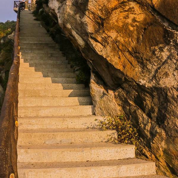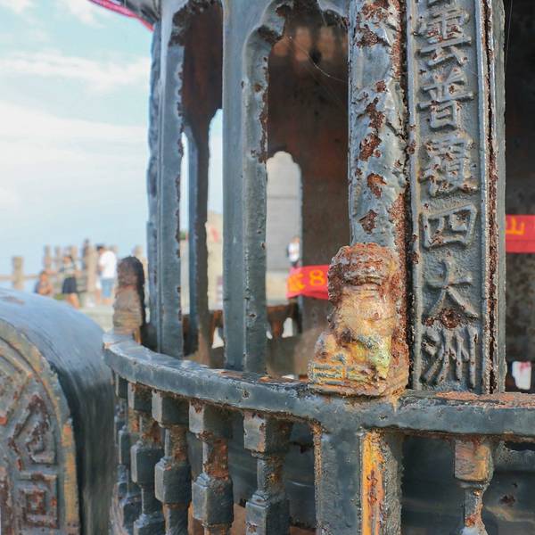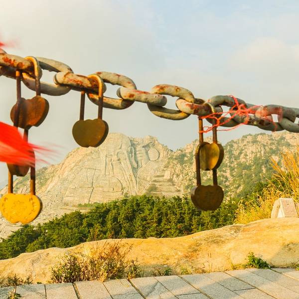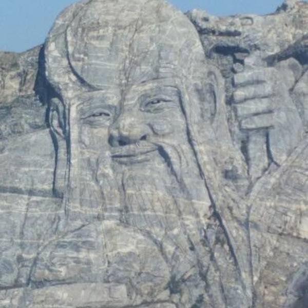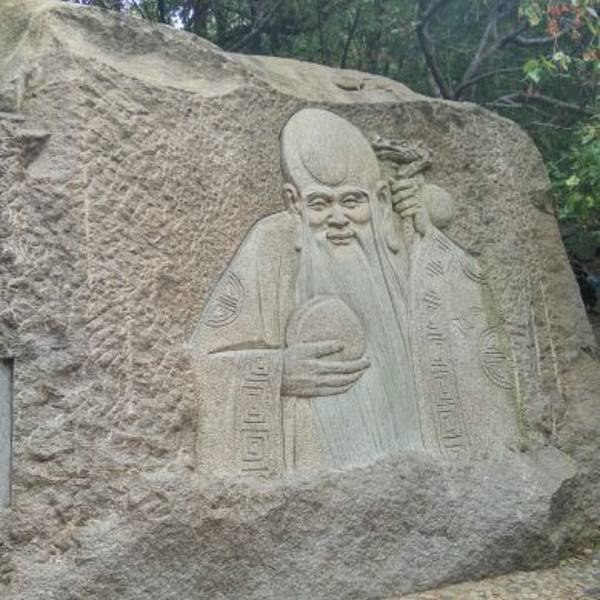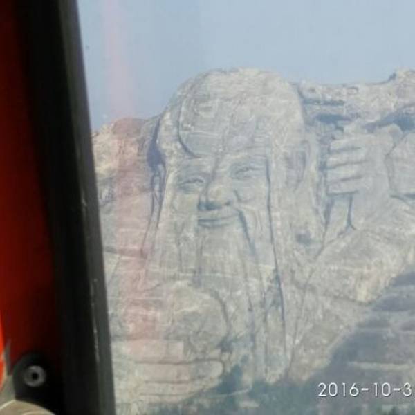 乘坐缆车,可以到达一处平台,这里有观赏巨大寿星雕像的最佳角度。这座寿星的巨雕是世界上最大的山体雕刻,高度是四川乐山大佛的三倍有余,仅头部长度就大于乐山大佛通高。巨雕所在的龟蒙顶西北侧天然裸岩,本就有着“寿星崖”之称,远看已有寿星的轮廓。几经雕琢,便分外逼真,使得这位千百年来安家于此的南极仙翁,更加慈眉善目,眼神温柔。