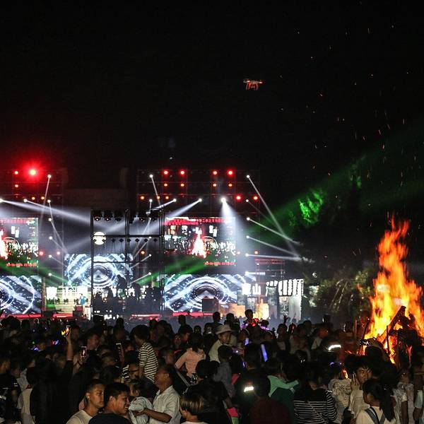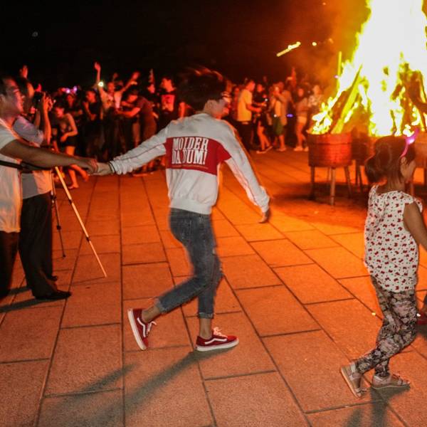 与山上的清冷不同,山下是热闹繁华的月光帐篷节。中秋月圆之夜,选出三名月光女神,用火种点燃篝火,人们围火舞蹈唱跳。谁叫月光亮得让人无心入眠。