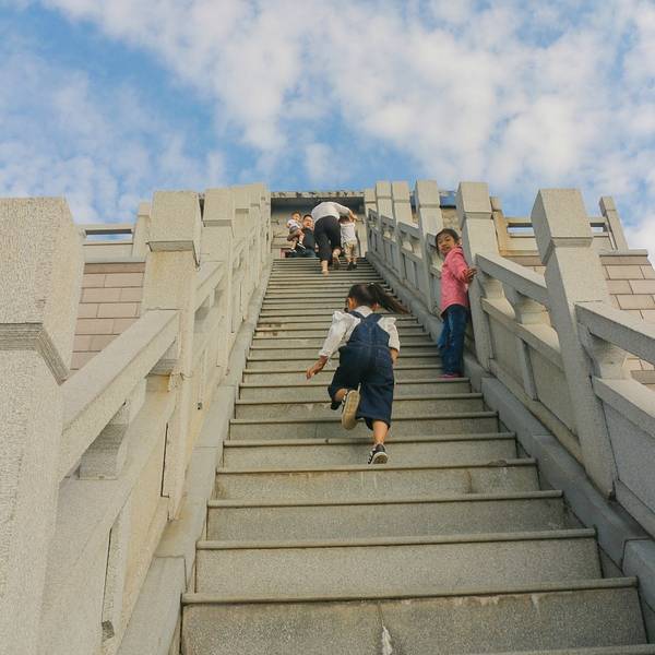 孩子玩得挺开心,一路跑在前面,风景挺好的。