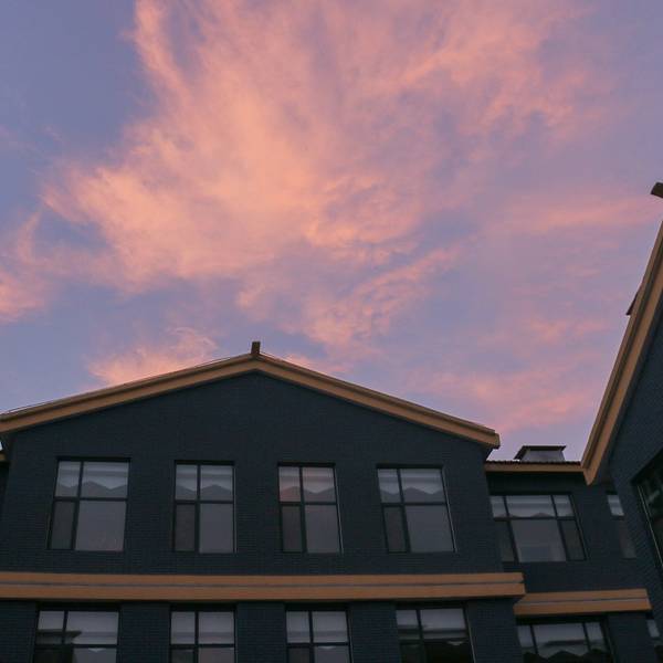 太阳才躲入山后,山上就立刻进入了夜晚,山脚却还有一抹晚霞铺天。