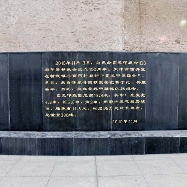 地方超级大,可参观的地方不多,停车超方便,人也不多,有一个三层的展厅,介绍了霍元甲的一生,有一...地方超级大,可参观的地方不多,停车超方便,人也不多,有一个三层的展厅,介绍了霍元甲的一生,有一些图片和影像展出,还有一个祭奠他的场所。如果从北京去天津旅游可以顺路玩一下。