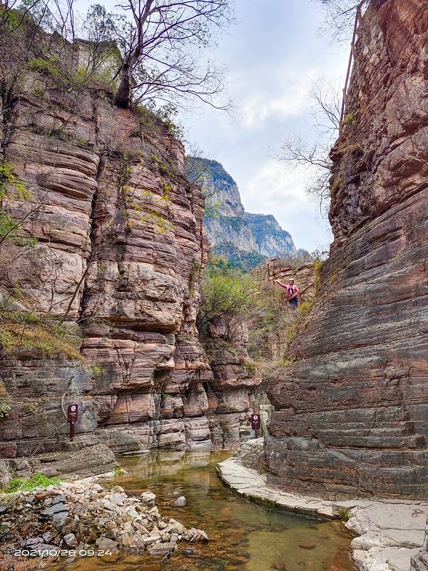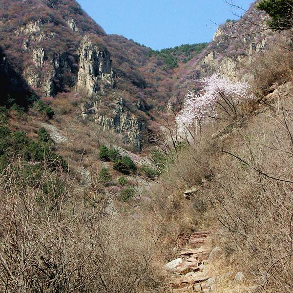 秋沟,顾名思义,最佳观赏时节就在初秋,夏天如果不发生干旱的话,秋沟也是一个避暑的好地方。由于笔者去的时间不对,所以,照片里看起来比较荒凉,不过,听说秋沟有很大的一片桃花林,如果喜欢桃花的朋友可以加以考虑。在秋沟,你也可以尝试一下攀岩的乐趣,发现了很多登山者在秋沟爬山,坡度也不是什么很陡,只是要小心脚下的各种各样的石头,当时,我一个小伙伴就是因为没有踩稳,所以就摔了一个狠的,半天爬不起来。