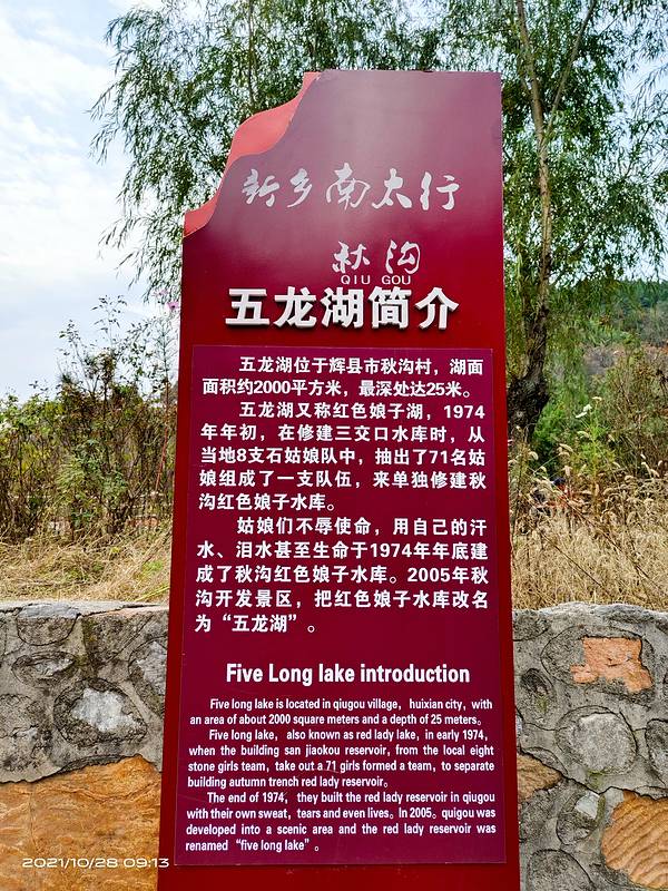 秋沟景区位于河南省辉县市南寨镇境内,距辉县市区50...我们下午16:50到达秋沟景区,开车进入景区后,下午17:10到达秋沟村,入住秋沟碧水山庄,山庄管吃住,一人60元/天。山庄侯老板人很好,服务不错,值得推荐。