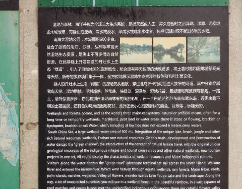 挺不错的,大,小孩子也喜欢去玩还是有不少机动游戏玩,过山车,高空自行车,冲浪板,烧烤场,南海大湿地公园,真的可以