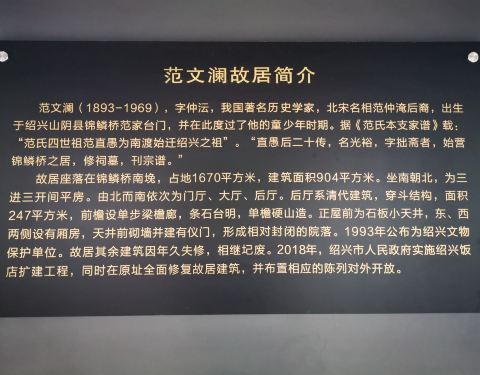 范文澜故居,位于浙江省绍兴市区龙山后街.故居坐南朝北,共三进,均为平 屋,占地891平方米