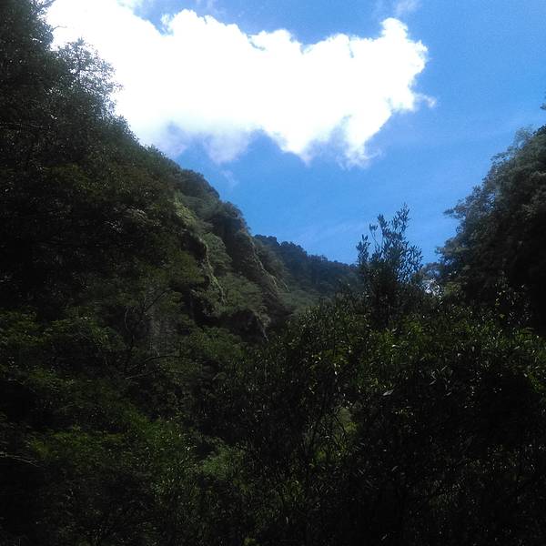 第三段,翡翠谷,平坦居多,略有上升,是真正的狭窄的峡谷,悬崖峭壁,水声隆隆,大小水潭深不见底,幽静,清新;