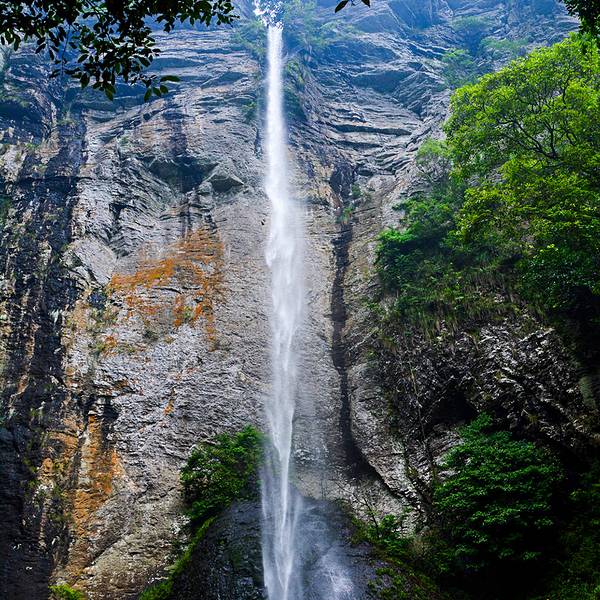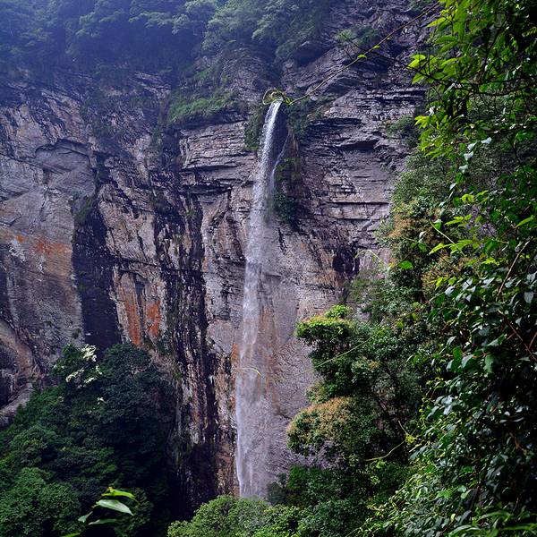 坐山崖峡谷观光索道,观峡谷风貌与瀑布流水,理想的避暑游览胜地。