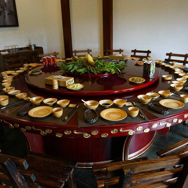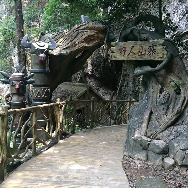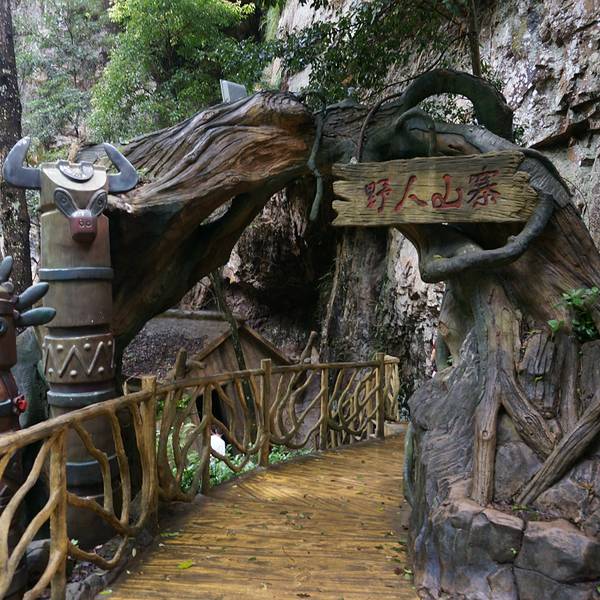 晚上雨不大的话有篝火晚会,可惜我们去的那天雨很大,就没有了。4、餐饮:有三餐是在这家好汉酒楼吃的。干净卫生,口味不错,鸭汤好喝。桌子很大吧,一桌可坐近20人,中间的菜是真的哦,不过也只是用来看看。5、住宿:入住的是QQ山寨,就在景区核心区旁边,蛋居,外观相当有特色,像一个个蛋,也可以认为是微型别墅。由于是在山上,室内比较潮湿。住宿地道路两旁,散落着一些塑料彩蛋,里面藏有各种消费抵用券,传说最高奖是免费入住别墅一晚,小朋友们很喜欢这个游戏的。6、景点:主要包括天池景区和峡谷景区,