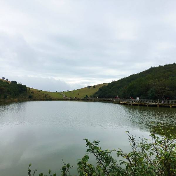 大门进去四五公里,第一个景点:天池景区,从大门进去,十分钟后,到达山顶,出现一个大的水池,即天池,池本身没什么特点,但出于高高的山头挺神奇的,站在池边,任凉风吹拂,看远方山头的草地,心情豁然开朗,沿池中木栈道走到池的另一端,一左一右两座山头都是草皮,满眼碧绿,信步走到山顶,远眺都是险峻的高山和峡谷,油然而生一种万丈豪情;天池景区后,坐观光大巴,往里约3公里,到另一个景区:峡谷景区,外看感觉平平淡淡一座破山头;