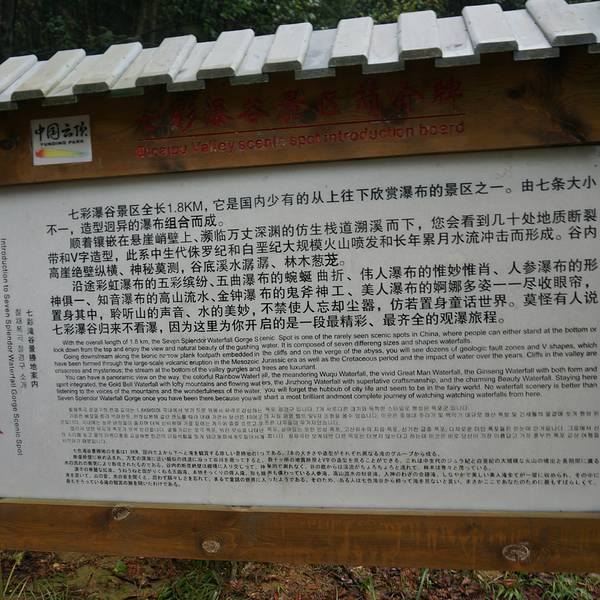 1)天池景区:入口处就在景区核心区旁边。主要景点为天池和草场。天池面积不大,水质普通,主要特色在于所处位置较高。天池旁边的道路是用大圆石头铺成,有些意思,其实不太好走。草场主要包括两个山头,左侧山头登顶后可见梯田,只是有些远了。右侧山头上则有一个亭子。两个山头都有一幢建筑,我们猜是用来避雨的。有不少人在草场上放风筝,草场上有很多商贩在卖风筝。建议游玩时间约1小时。天池天池旁边的路梯田2)峡谷景区:须坐景区交通车前往,车程约10分钟。主要分为三部分,七彩瀑布景区(落差较大,有许多瀑布,水面普遍较窄)、红河谷景区、翡翠峡谷景区。有两种游玩路线。第一种是步行+缆车方式,可游览全部景点,但对体力有些要求,由于落差较大,台阶较陡,可考虑使用登山杖,建议游玩时间约3小时。另一种是双程缆车,比较轻松,一般仅游览翡翠谷景区,建议游玩时间约1小时。水墨瀑布伟人瀑布人参瀑布,落差85米落差最大的金钟瀑布,108米美人瀑布冰川冲刷痕迹1冰川冲刷痕迹2三连瀑冰川冲刷痕迹3缆车7、注意事项,山中天气风云变幻,忽雨忽晴,建议带上雨伞。