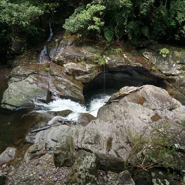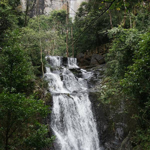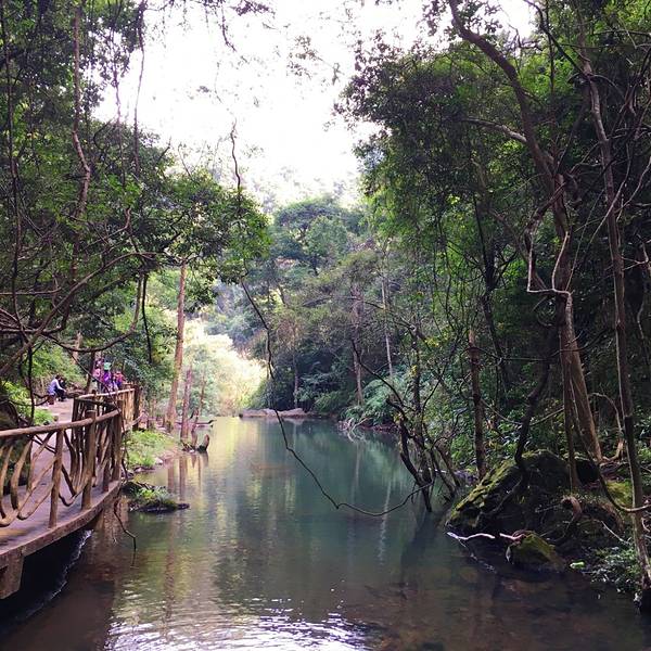 在次是高山峡谷景区。它是由七彩瀑谷、红河谷、翡翠谷组成,三谷被栈道全线连接,由全长1000米、垂直高差360米的五彩飞索把山顶与峡谷上、下连通。来到峡谷就真的来到了天然氧吧,两侧高山群立,树木茂盛。河里清澈见底,小鱼嬉戏。大小瀑布,飞流而下。一路前行,有山有树有河流,还有各种大石头,越往里走景色越美。一定要坚持走到最里面哦!