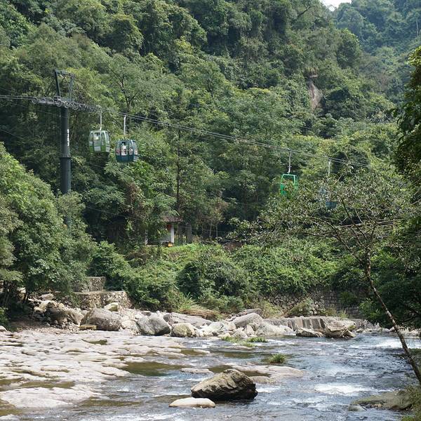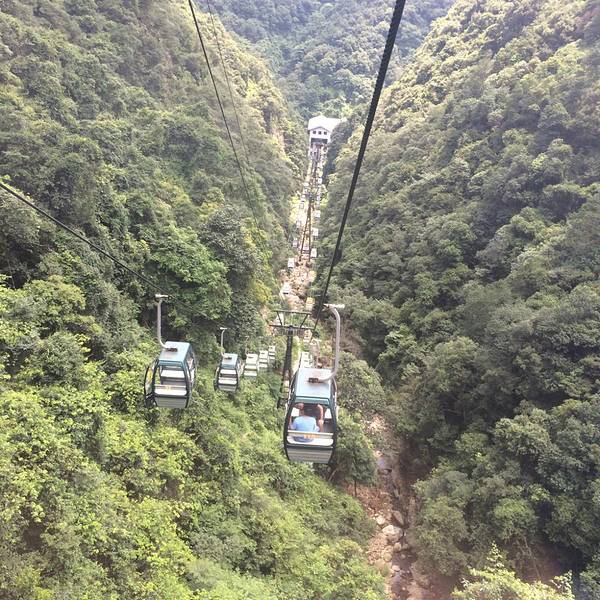 三段峡谷一路走完,是缆车然站,坐上缆车,长度1000米,落差328米,缓缓上升,下面景色尽收眼底;
