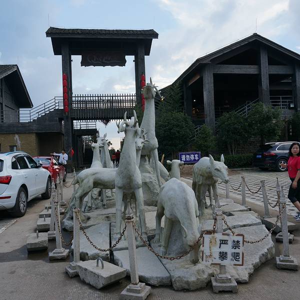 景区交通车3、景区核心区:一幢大型建筑,包括卖特色商品的商场(李干等)、茶馆、KTV等。