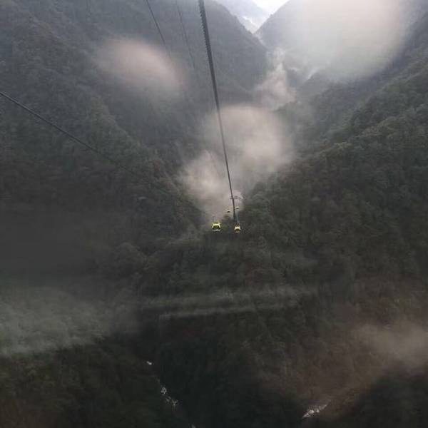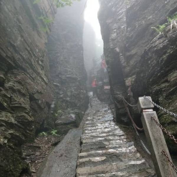 开始登山,经过蘑菇石继续向上老金顶,要经过一段陡峭狭窄的山路石阶,抓住铁链步步惊心坐上缆车一会儿周围就包裹着雾气,20分钟后到站。气温骤降到14度,还夹着小雨。开始登山,经过蘑菇石继续向上老金顶,要经过一段陡峭狭窄的山路石阶,抓住铁链步步惊心。