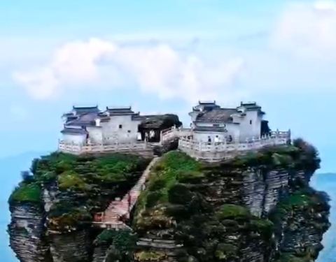 是不是有一种很神奇的感觉,弯弯曲曲缭绕而上的山路,陡峭的悬崖山顶却盖着一幢幢寺庙直入云宵之中,...是不是有一种很神奇的感觉,弯弯曲曲缭绕而上的山路,陡峭的悬崖山顶却盖着一幢幢寺庙直入云宵之中,梵净山的美丽和震撼从山上山下都令人惊叹不已