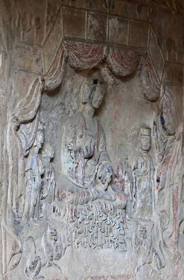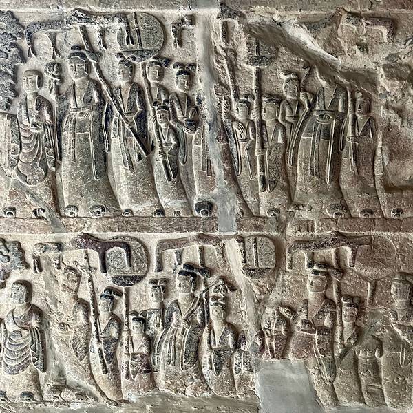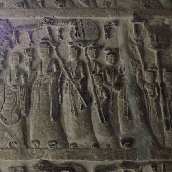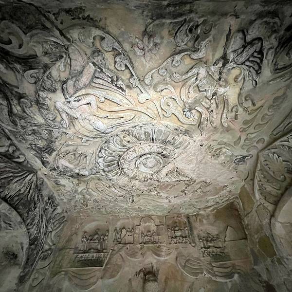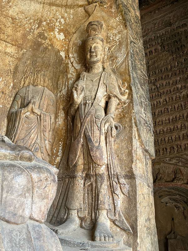 一共5个窟,可以入内的有两个,一尊尊细看,比地面雕莲到顶上的飞天,都好美。帝后礼佛图更号称孤品,保存非常完好,而且雕刻精美。