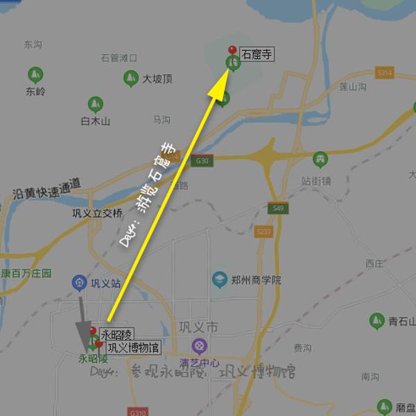 附上这次行程的路线图,还有很多地方没去,留了点遗憾,但是路上的故事和人文、风光都很精彩Day5:洛阳——巩义南——康百万庄园——石窟寺——巩义南——上海附上这次行程的路线图,还有很多地方没去,留了点遗憾,但是路上的故事和人文、风光都很精彩
