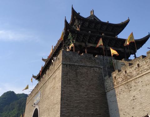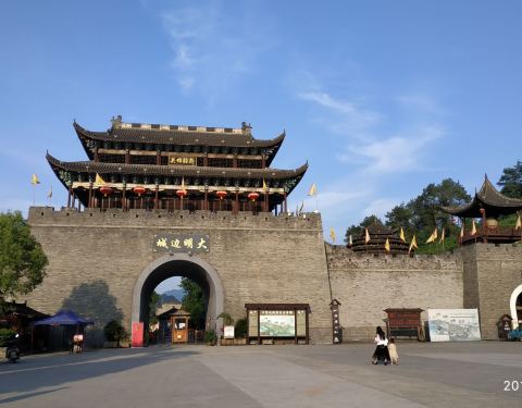 大明边城位于铜仁市东郊,于水晶阁沿锦江右岸展开。整个景区以明朝为主题,充满了文化韵味,在此可以了解明朝以来贵州600年的历史文化。 在大明边城门口,有一座高大威武的古城墙,这里是许多游客拍照留念的地方。游客还可以去边城广场演艺区欣赏当地特色表演,了解贵州的风土人情。晚上古城的灯光很是迷人,在此休闲散步也是一个不错的选择。
