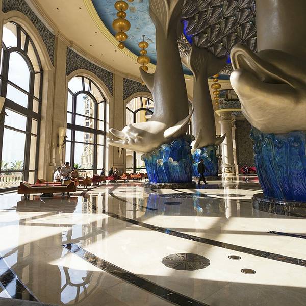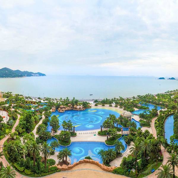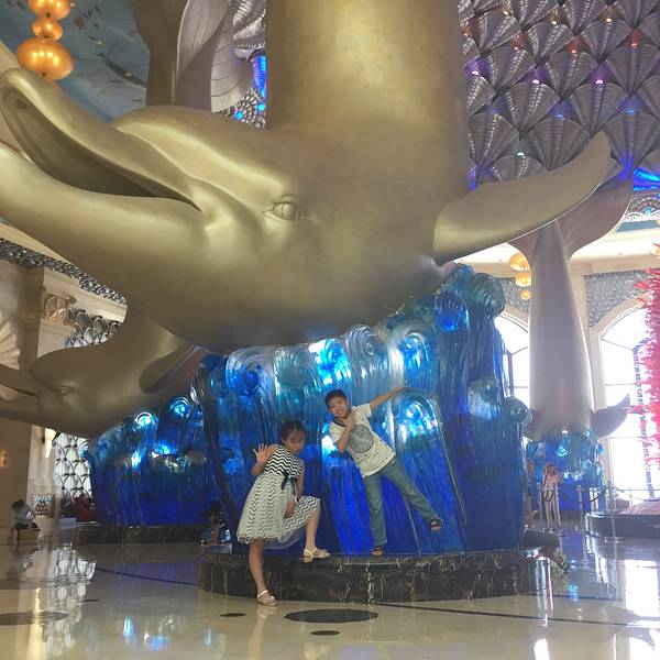 1、横琴湾酒店:横琴湾酒店是珠海第一家超五星级的海洋主题酒店,就坐落在长隆国际海洋度假区的中心位置,总建筑面积30万平方米。酒店有丰富的海洋元素和独树一帜的海豚主题风格,整个酒店由内到外都极有特色,像极了一个海洋主题的童话世界。下图是酒店大堂的一角,看到几个超大的海豚柱了么。 展开