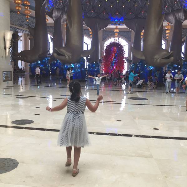 整个度假区为一水的海洋风格建造,面积很大,要想一次性玩遍整个景区,呆一天肯定是不够的。白天可以在海洋王国与珍稀的鲸鲨、白鲸、北极熊和其它可爱动物见面,挑战全球最长的鹦鹉过山车,体验从20层楼高度飞速而下的刺激和360度翻转的疯狂。