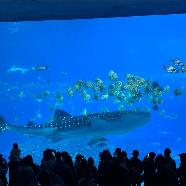亮点:穿过海底隧道,仿佛置身于海底世界之中,近距离接触巨大的鲸鲨、可爱的魔鬼鱼,来来往往的鱼群让人应接不暇。