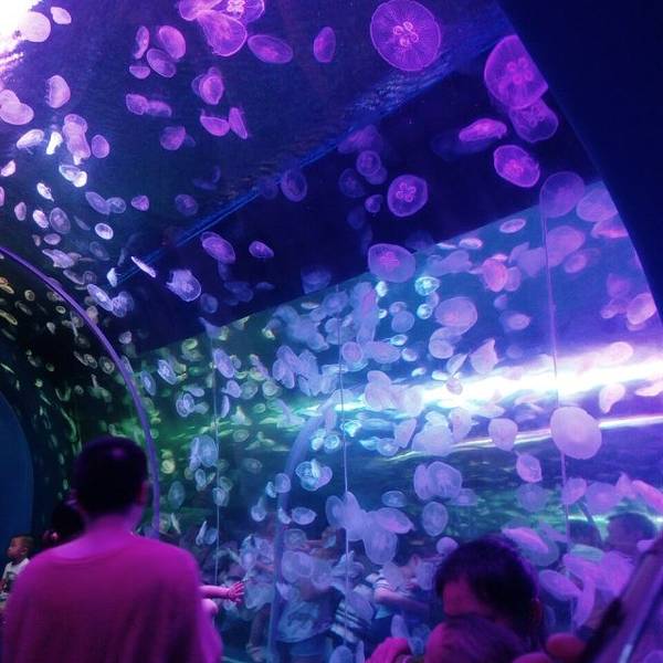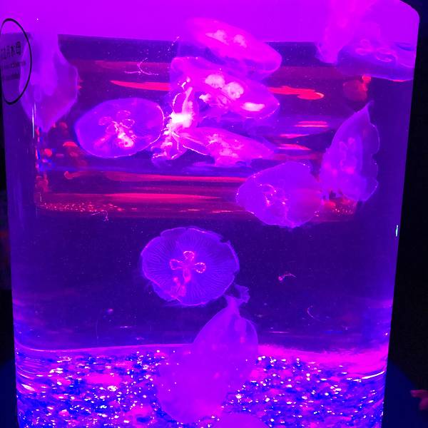 但我觉得水母也很好看,虽然真个馆不是很大 大概30分钟就逛完了,但是回头看看我拍下的水母的照片。真的觉得很梦幻,不同种类的水母在不同的缸里面 灯光的变化可以让你拍到不同颜色风格的水母 感觉很神奇。