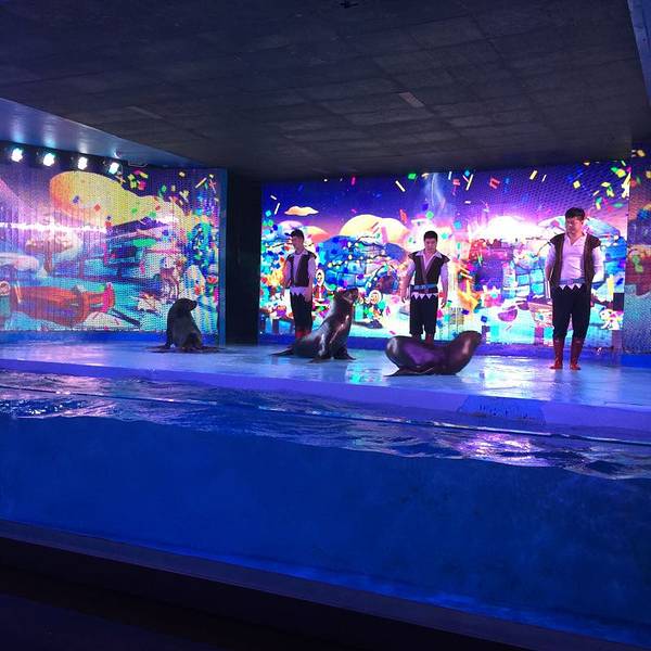 另外,水母馆里面有一个小型的海狮表演,有固定场次的。想看的朋友可以提前订一下票。海狮表演的时候 尽量不要坐第一排吧,因为表演过程中海狮会溅起水花,我坐在前排正中间 衣服都打湿了一些。