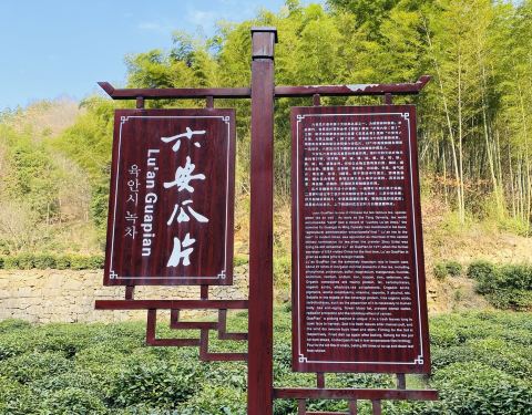 ...到景区大门,景色超美,溪水清澈,还有茶园(六安瓜片)茂林修竹,随处可见的兰草花,适合一家人踏春