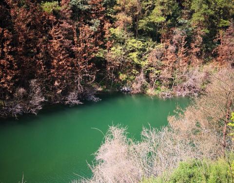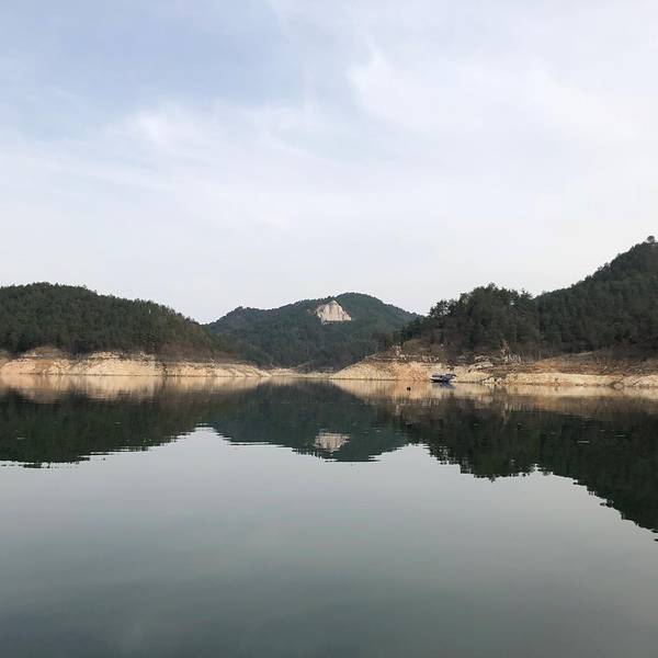 大型的人工湖,坐落在群山环绕之中,山清水秀,气候宜人。