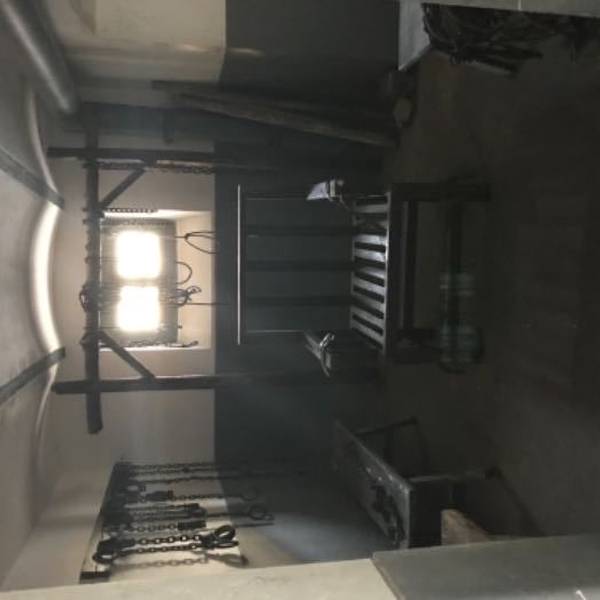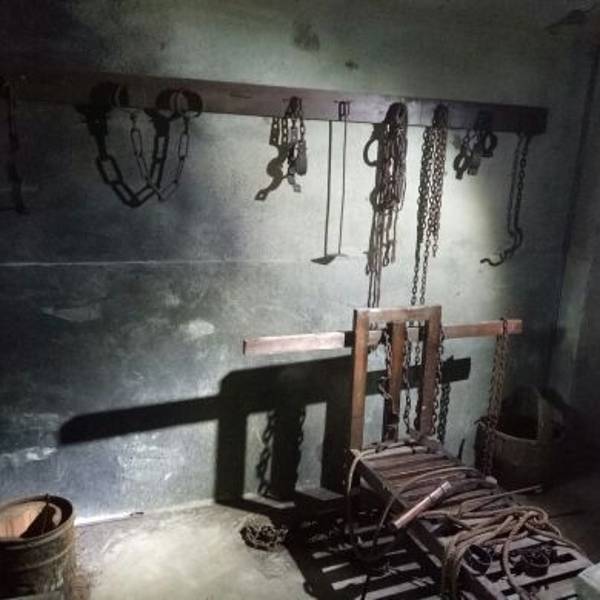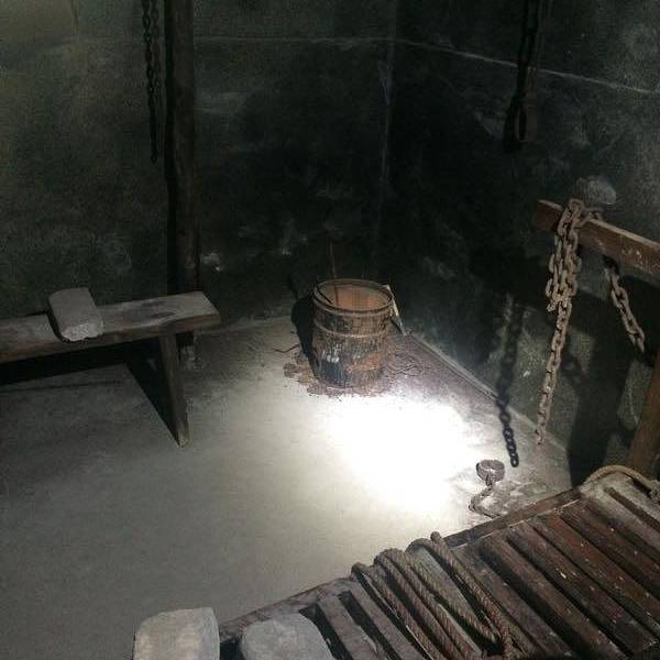 地下负一层是日军水刑的旧场地,象征性地保留了一些铁链和铁镣等,还有老虎凳,挺阴森...环境很到位!