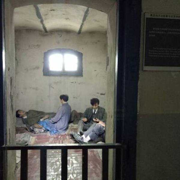 这个监狱旧址曾经有过英雄牺牲,场馆为了还原当年的景致,用了人物蜡像作为展示,挺吓人...