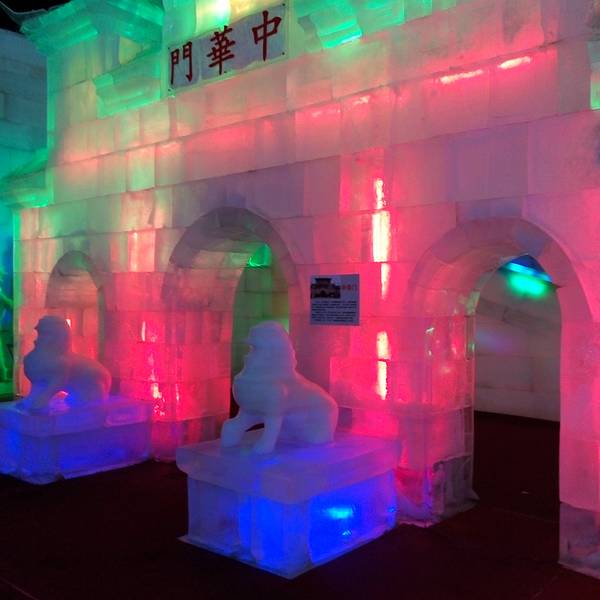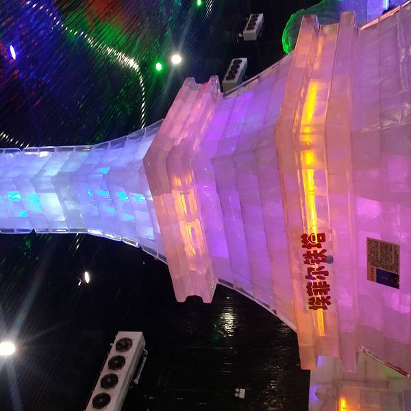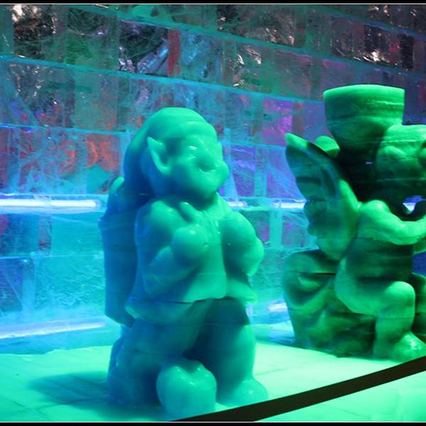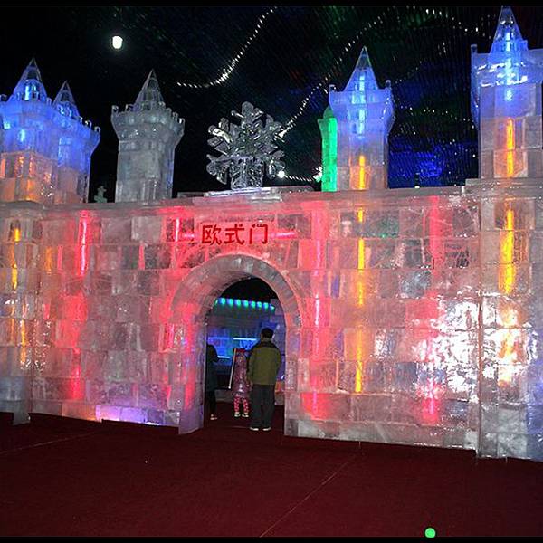 冰雕的种类也非常多,还有大型冰雕,很多人在这里拍照,还有小孩子忍不住舔舔墙看看是不是冰糕呢。