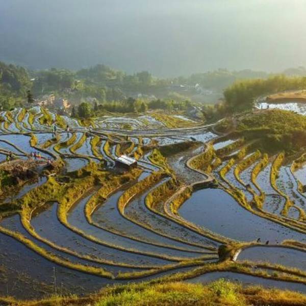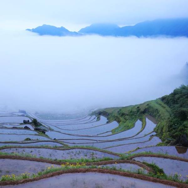 最佳的旅游时节是4-6月,每逢春末初夏这里的风景异常美丽,绮丽多姿的茫茫云海,时而象温驯的少女静卧山川、裸露胸怀,山峰、树木、房舍点缀其间,如同蓬莱仙境;时而象狂暴的潮,汹涌澎湃。那种宁静、那种和谐、那种天人合一的境界、变幻莫测的云雾,雾中的七彩梯田让人沉醉,美得难以形容。