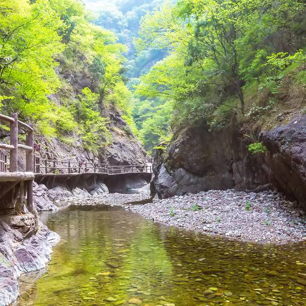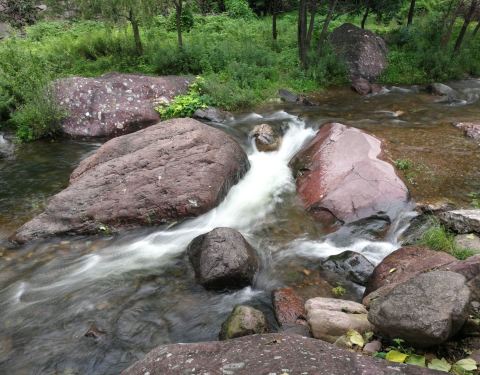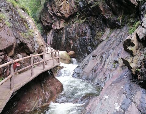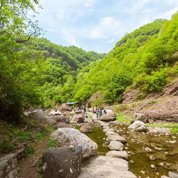 溪水湍流,沿河谷行走约三公里,河道中五彩斑斓的巨石给游客留下了深刻印象,成年人可以峡谷探秘,小孩子可以戏水玩耍。景交车单程15元约4公里。