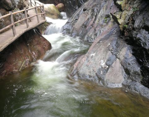 沿河谷行走约三公里,河道中五彩斑斓的巨石给游客留下了深刻印象,成年人可以峡谷探秘,小孩子可以戏水玩耍溪水湍流,沿河谷行走约三公里,河道中五彩斑斓的巨石给游客留下了深刻印象,成年人可以峡谷探秘,小孩子可以戏水玩耍。景交车单程15元约4公里。