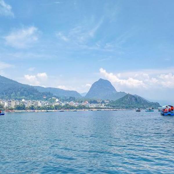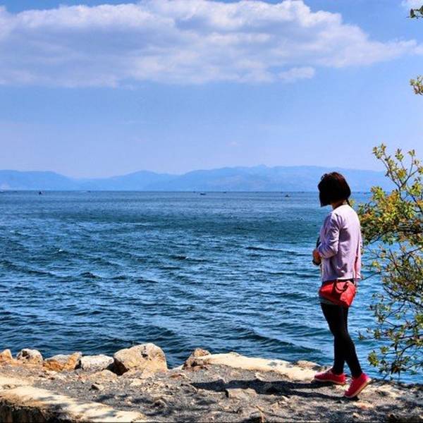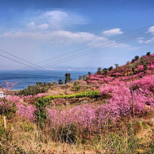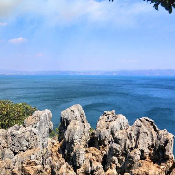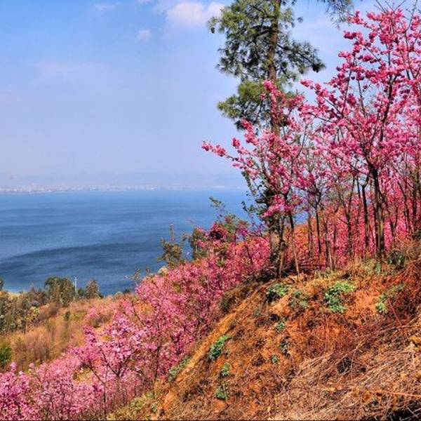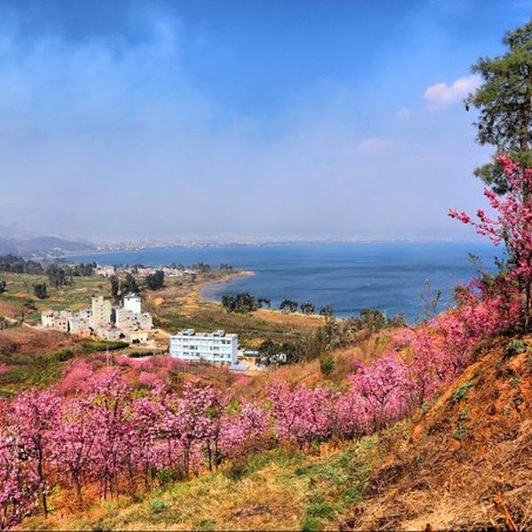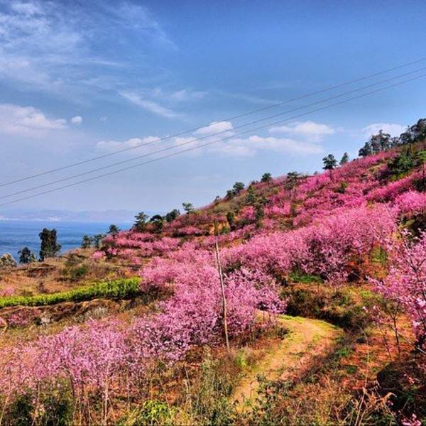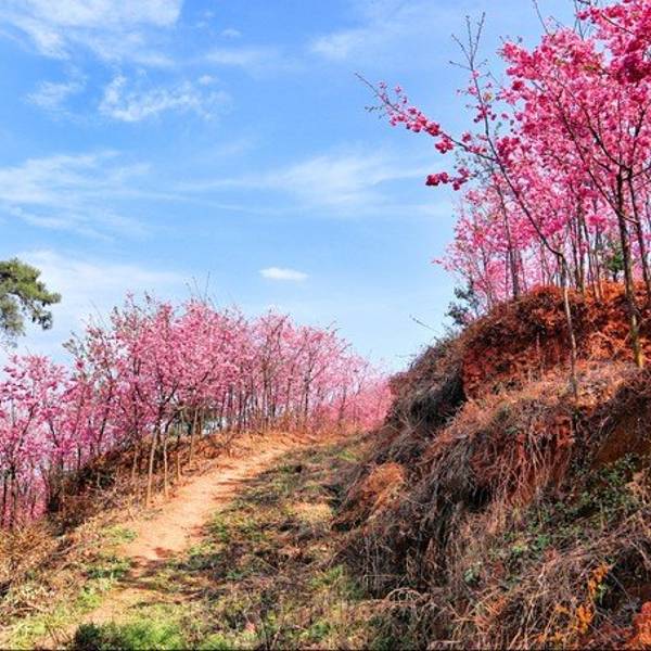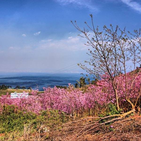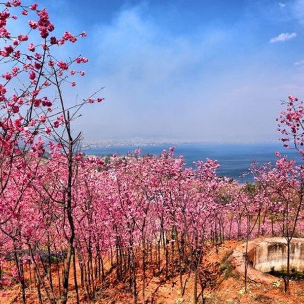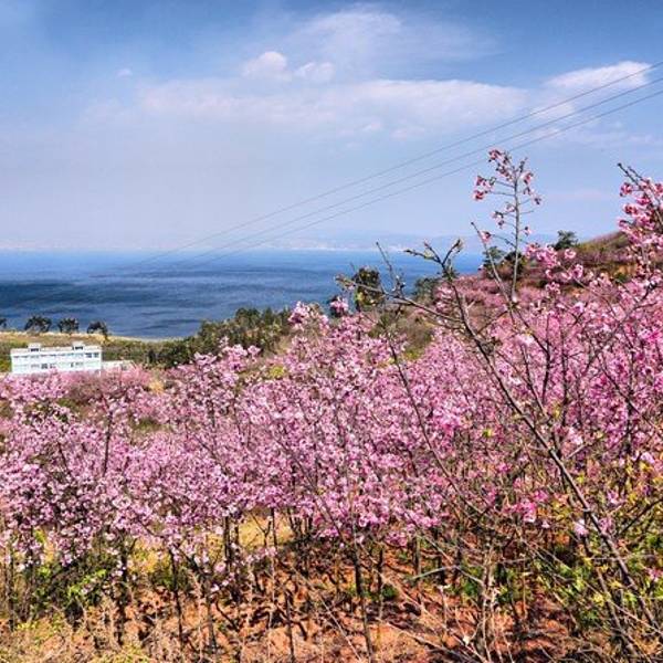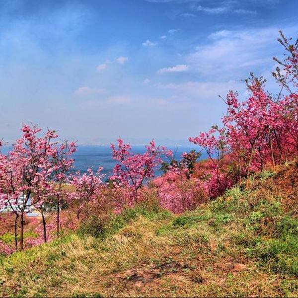金骆驼 樱花小道,远处的山和云朵,让我感觉误入仙境。风景不错。进门后发现有很多水上游玩设施。真的是高大啊离开樱花谷后前往西岸的禄充景区。也是来抚仙湖必去的景区之一。