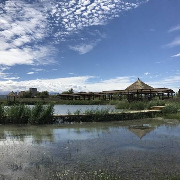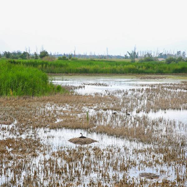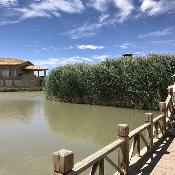 漫步西北地区少见的广阔湿地中,湖水周围芦苇飘荡,环境优美。 春夏两季有多种鸟类栖息,花朵盛开,是拍照摄影的胜地。