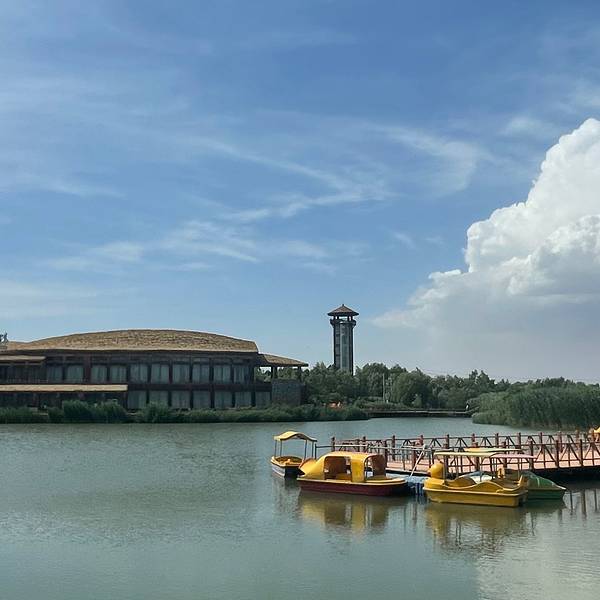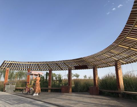 张掖国家湿地公园门票免费,看起来更像是一个开放的供人乘凉、锻炼的地方,公园里面还可以租自行车和钓鱼。