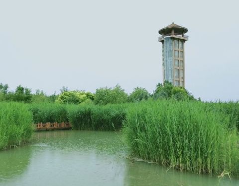 张掖国家湿地公园位于张掖市区北约3公里处,是西北地区较大的几个城市湿地公园之一。公园内有清澈的湖泊、大面积的芦苇荡、葱郁的树木和草坪等众多环境优雅的景观,在西北地区十分少见。湿地公园的观赏内容十分丰富,春天有鸟类迁来,夏季有荷花,秋天芦苇金黄飘荡,冬天还有美丽的雪景。另外园内还有垂钓、自行车、观光车、漂流、游船等众多游乐项目,是张掖市区休闲娱乐的好去处。 湿地公园的面积很大,呈长条形,长约有4-5公里,公园有很多个入口连通周围的公路,可以从各个方向进入,园内修建有木制栈道连接各个入口与景观区。一般人来到湿地公园都是以休闲散步为主,沿着栈道随意逛逛或骑骑自行车,舒心怡人,不需要穿越整个园区,游览1-2小时即可。有些游客会来此体验娱乐项目,并乘观光车或步行遍游园区,还有选择摄影的游客来此拍摄鸟类、芦苇、花朵、湖泊等,可以游玩半天甚至更长。 公园内的景观以湿地芦苇荡为主,有多条清澈的小河在园内纵横交错,几个碧绿的湖泊坐落于在河道的中间,在小河和湖边便是茂盛的芦苇荡,每年春夏时葱绿的景色十分美丽,秋冬金黄的芦苇飘荡也是摄影的好景观。除了芦苇之外,园内还有很多的树木,构成了一片优雅的湿地风光,在景色粗粝的西北十分罕见和独特,沿着木制栈道漫步期间,心情十分舒畅。每年春夏两季,园内便会迁来很多的鸟类,天鹅、野鸭等一起游曳在湖水河水之中,适合喜欢观鸟的游客前来观赏。同时园中的很多花朵也都在此盛开,春天有各种野花和沙枣花,夏天湖水中有荷花盛开,此时前来拍摄花朵,是出好照片的良机。 园内还有一些娱乐项目可供游人选择,在几个主要入口均有观光车可乘,单程从一个入口到另一个口约10-15元,也可以租自行车游玩,每小时约10元。园内还有垂钓、游船等娱乐项目,较精彩的是位于园内东北处湖边的漂流项目,每年夏天都会有游人来此畅爽玩水的乐趣,根据游船不同收费在40-60元不等,感兴趣的可以前去一试。 另外,园区内还有一座张掖城市湿地博物馆展示关于湿地的背景知识,博物馆旁有一个观景台,可以登台观看园区的全景,可以前去逛逛。 在园内正南侧有一座甘泉府,为游客提供餐饮和购物服务。园区位于郊区,周边购物的地方较少,建议在游玩之前带好饮水和零食。