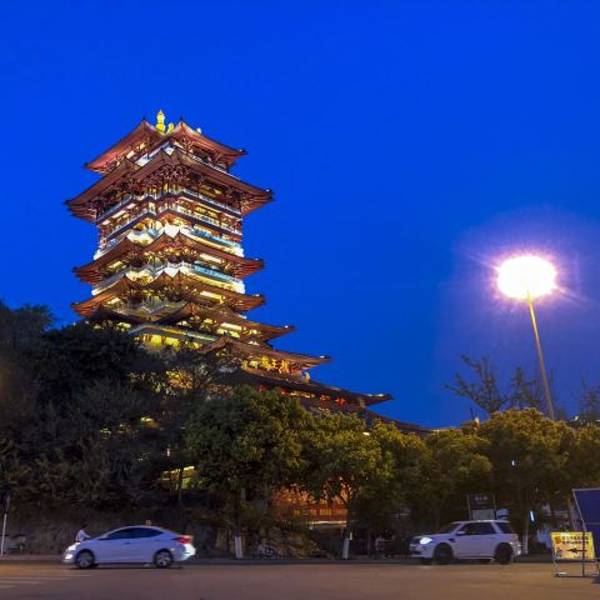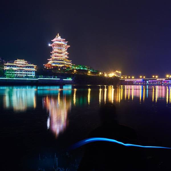 金骆驼 登越王楼视野非常辽阔,而且晚上登楼可以观赏2016年2月开始的绵阳灯光秀。灯光秀及三江夜景的说明越王楼,这个算是绵阳的地标。